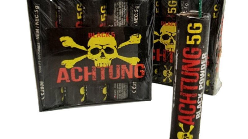 Extrem laute Böller – Maximale Power im 5er Pack Die Achtung 5G Black Böller liefern kompromisslose Lautstärke dank 5 Gramm NEM pro Stück. 5er Pack – kompakt und wirkungsvoll Extrem lauter Schwarzpulver-Effekt Geeignet für Showeffekte und private Pyro-Highlights Obwohl der Achtung 5G Black Böller legal und CE-zertifiziert ist, wird sein Effekt von Nutzern mit dem eines Polenböllers verglichen – allerdings mit dem Vorteil der geprüften Sicherheit und offiziellen Zulassung für den deutschen Markt. Ein Muss für alle, die auf maximale Wirkung setzen – kompromisslos laut, kompromisslos schwarz.