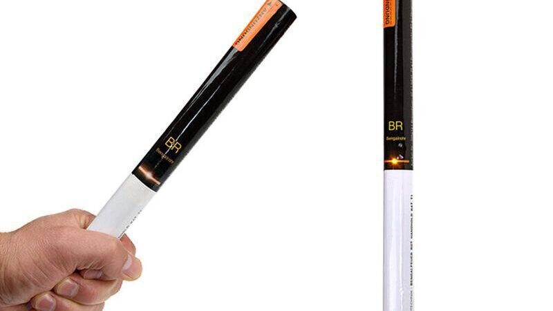 Das Pyroland „Bengalrohr“ brennt ca. eine Minute lang mit intensiver, farbiger und raucharmer Flamme ab. Das Besondere an unserer Ausführung: Man darf es ganz offiziell in der Hand halten und es eignet sich daher hervorragend für: szenische Darstellungen oder Illuminationen auf Veranstaltungen die Kennzeichnung von Gefahrenstellen oder für Showproduktionen und Feuerwerke Das Pyroland „Bengalrohr“ darf auch auf nicht brennbaren Untergründen installiert werden. Für den professionellen Einsatz kann überdies hinaus ein elektrischer Anzünder zum Auslösen verwendet werden. Abmessungen/Stück: 30×2,4x2cm Für Kunden, die sich etwas mehr Rauchentwicklung wünschen, halten wir unser „Breslauer Handfeuer “ hier im Shop parat. 1 Bengalrohr