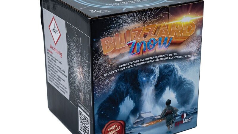 Entfessele den Blizzard – mit frostigen Blitz- und Donnerschlägen Wecke mit der Blizzard Znow 16 Schuss Feuerwerks-Batterie von Pyroland den Eisgiganten und lass den Himmel im funkelnden Weiß erstrahlen. Die Feuerwerksbatterie umfasst 16 Schuss als riesiger Blinksternsturm , der in klaren und trockenen Nächten intensiv zur Geltung kommt. Jeder einzelne Schuss wird von lauten Donnerschlägen begleitet und bringt funkelnde Elektro-Blitze an den Himmel. Effekthöhe bis zu 40 Meter 16 knallende Schüsse intensiver, weißer Leuchteffekt aufregender Blitz und Donner Effekt Entfessele in der Silvesternacht einen wahren Schneesturm – mit einer Feuerwerks-Batterie, die wie ein Blizzard durch die Luft fegt.