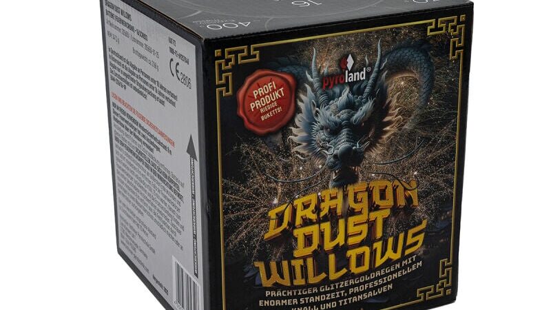 Dragon Dust Willows 16-Schuss Feuerwerks-Batterie Faszinierendes Willows-Feuerwerk für deine Show Die Dragon Dust Willows 16-Schuss Feuerwerks-Batterie verzaubert mit beeindruckenden Effekten und einer zuverlässigen Performance. Mit 16 Schuss sorgt diese Batterie für eine ausdrucksstarke Lichtshow, die das Publikum in ihren Bann zieht. Besonders die eleganten Willows-Effekte, bei denen goldene Funken langsam zur Erde sinken, schaffen eine magische Atmosphäre, die deine Feuerwerks-Feierlichkeiten bereichert. Effekt: Goldene Willows mit knisternden Ausläufern Schussanzahl: 16 Schuss Höhe: Bis zu 30 Meter Ideal für: Private Feierlichkeiten, Silvester und Großveranstaltungen Durch ihre zuverlässige Qualität und die langanhaltenden Effekte ist die Dragon Dust Willows eine ideale Wahl für alle, die klassische und doch spektakuläre Feuerwerke lieben. Mit der richtigen Mischung aus Fülle und Eleganz wird diese Batterie für unvergessliche Momente sorgen. Mit der Dragon Dust Willows 16-Schuss Batterie erlebst du ein Highlight der Feuerwerkskunst – perfekt geeignet für alle, die auf der Suche nach einem hochwertigen und eindrucksvollen Produkt sind.