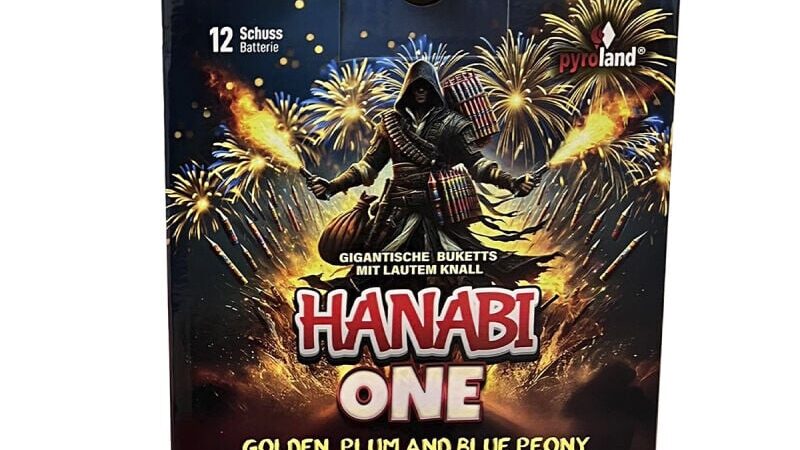 Der Hanabi One aus unserer neuen Hanabi-Serie überzeugt als 12-Schuss-Batterie nicht nur durch sein kreatives Design, sondern auch durch seine beeindruckende Effektvielfalt. Mit leuchtend goldenen Buketts und blaue Päonien, begleitet von kräftigen Knalleffekten, lässt er den Nachthimmel zu Silvester in voller Pracht erstrahlen. Ein echtes Highlight für alle, die Wert auf intensive Farben und ein harmonisches Gesamtbild legen!