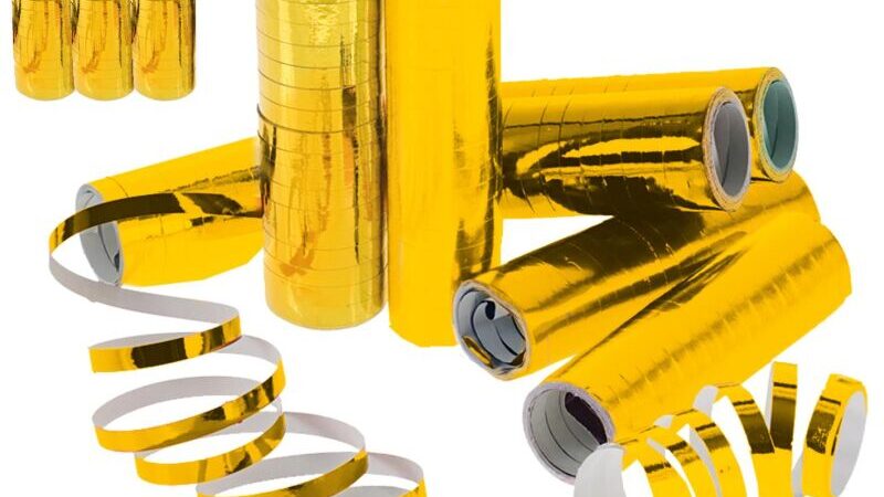 Metalic goldene Luftschlangen. 18er-Röllchen. 3 Rollen.